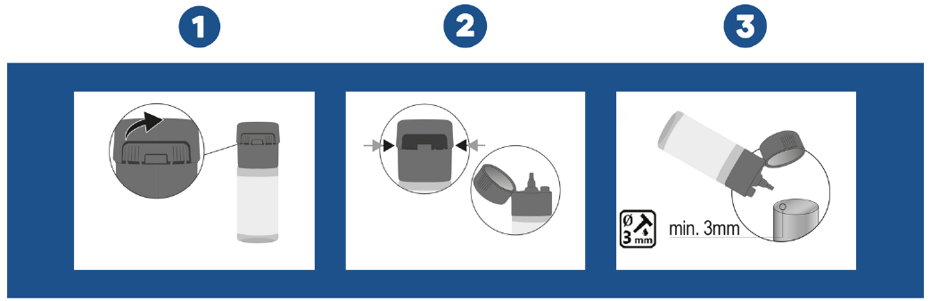 Premi i lati del tappo e apri la boccetta.